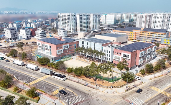 ÃʵîÇб³¿Í ÁßÇб³ »çÀÌ¿¡ °ø¿ë°ø°£À» ¹èÄ¡ÇØ µµ¼°ü, ´Ù¸ñÀû °´ç, ÇàÁ¤ °ø°£ µî È¿À²ÀûÀ¸·Î Ȱ¿ëÇÒ ¼ö ÀÖµµ·Ï Çß´Ù.