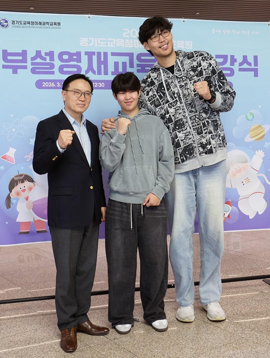 ÀÓÅÂÈñ °æ±âµµ±³À°°¨(¿ÞÂÊ)ÀÌ 28ÀÏ °æ±â°úÇаíµîÇб³ °úÇпµÀ翬±¸¼¾ÅÍ ÄÁÆÛ·±½ºÈ¦¿¡¼­ ¿­¸° °æ±âµµ±³À°Ã» ¹Ì·¡°úÇб³À°¿ø ºÎ¼³ ¿µÀç±³À°¿ø °³°­½Ä¿¡¼­ Ű 2m 21cm¿¡ Çѱ¹ ÃÖÃÊ NBA Ãâ½Å ÇϽÂÁø Àü ³ó±¸¼±¼ö(¿À¸¥ÂÊ) µî°ú ±â³äÃÔ¿µÀ» Çϰí ÀÖ´Ù.(»çÁø= °æ±âµµ±³À°Ã» Á¦°ø)