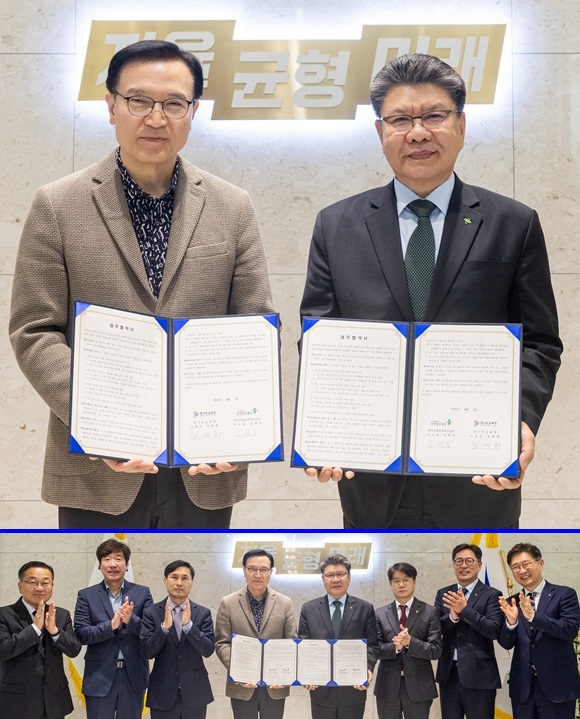 ÀÓÅÂÈñ °æ±âµµ±³À°°¨(¿ÞÂÊ)ÀÌ ±èÇöÁß Çѱ¹»ê¾÷¾ÈÀüº¸°Ç°ø´Ü ÀÌ»çÀå°ú 1ÀÏ µµ±³À°Ã» ³²ºÎû»ç¿¡¼­ ¡®»ê¾÷¾ÈÀüº¸°Ç ±³À° °­È­¸¦ À§ÇÑ ¾÷¹«Çù¾à¡¯À» ü°áÇÏ°í ±â³äÃÔ¿µÀ» Çϰí ÀÖ´Ù. ¾Æ·¡´Â ´Üü ±â³äÃÔ¿µ ¸ð½À.(°æ±âµµ±³¤ÅÀ°Ã» Á¦°ø)