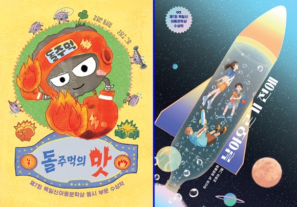 Á¦7ȸ ¸ñÀϽžƵ¿¹®Çлó ¼ö»óÀÛ °­ÁöÀÎ ÀÛ°¡ÀÇ µ¿½ÃÁý ¡®µ¹ÁÖ¸ÔÀÇ ¸À¡¯ Ç¥Áö(¿ÞÂÊ), Á¦7ȸ ¸ñÀϽžƵ¿¹®Çлó ¼ö»óÀÛ ÇϽÅÇÏ ÀÛ°¡ÀÇ µ¿È­Áý ¡®³¯¾Æ¿À¸£±â Àü¿¡¡¯ Ç¥Áö(¿À¸¥ÂÊ)