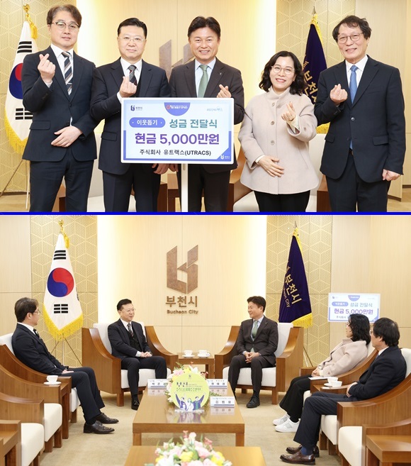 ºÎõ½Ã º¹ÁöÁ¤Ã¥°ú¿¡ µû¸£¸é À±Á¾Ã¶ ¢ßÀ¯Æ®·¢½º ´ëÇ¥´Â ¡°Áö¿ª»çȸ·ÎºÎÅÍ ¹ÞÀº Áö¿ø°ú »ç¶ûÀ» ´Ù½Ã Áö¿ª¿¡ µ¹·Áµå¸®´Â °ÍÀÌ ±â¾÷ÀÇ ¿ªÇÒÀ̶ó°í »ý°¢ÇÑ´Ù. À̹ø ¼º±ÝÀÌ ¾î·Á¿î ÀÌ¿ôµé¿¡°Ô ÀÛÀº À§·Î¿Í Èñ¸ÁÀÌ µÇ±æ ¹Ù¶õ´Ù¡±¸ç ¡°¾ÕÀ¸·Îµµ ºÎõ°ú ÇÔ²² ¼ºÀåÇÏ´Â ±â¾÷ÀÌ µÇµµ·Ï ³ª´®À» À̾°Ú´Ù¡±°í ¹àÇû´Ù.