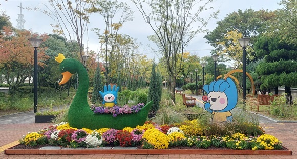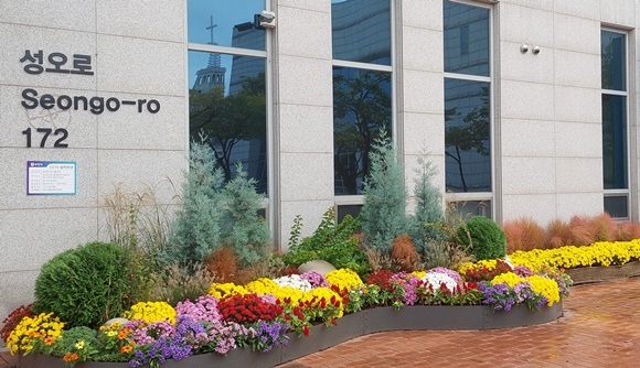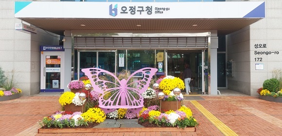 ¿ÀÁ¤±¸ û»ç ¾Õ È­´Ü¿¡ °¡À»²ÉÀ¸·Î Á¶¼ºµÈ °¡À»Á¤¿ø.(»çÁø= ¿ÀÁ¤±¸ Á¦°ø)