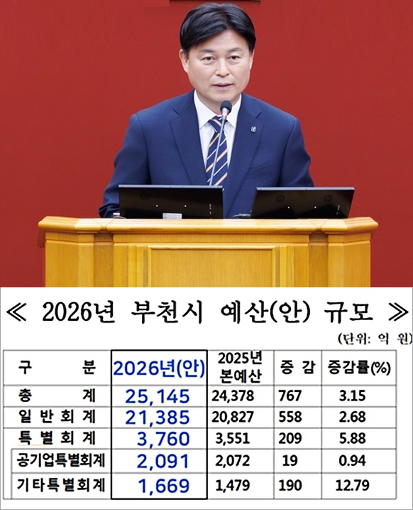 Á¶¿ëÀÍ ºÎõ½ÃÀåÀº À̳¯ ¿ÀÀü ºÎõ½ÃÀÇȸ Á¦2Â÷ Á¤·Êȸ Á¦1Â÷ º»È¸ÀÇ¿¡¼ 2026³â ¿¹»ê¾È Á¦Ãâ¿¡ µû¸¥ ½ÃÁ¤¿¬¼³¿¡¼ ¿¹»ê¾È Æí¼º°ú °ü·Ã, ¡°³¶ºñ¼º¡¤°üÇàÀû ÁöÃâÀº °ú°¨È÷ ÁÙÀ̰í, ¼º°ú Áß½ÉÀÇ ÀçÁ¤ ¿î¿ë ü°è·Î ÀüȯÇϰڴ١±¸ç ¡°È®º¸µÈ Àç¿øÀº ½Ã¹ÎÀÌ Ã¼°¨ÇÏ´Â Çٽɻç¾÷°ú ¹Ì·¡ ÅõÀÚ ºÐ¾ß¿¡ Àü·«ÀûÀ¸·Î ÁýÁßÇϰڴ١±°í ¹àÇû´Ù..