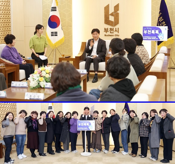 Á¶¿ëÀÍ ºÎõ½ÃÀåÀÌ Áö³­ 25ÀÏ ½Ãû»ç °ßÇÐ ÇÁ·Î±×·¥ ¡®210, ºÎõÅåÅ塯À» ÅëÇØ ½ÃûÀ» ¹æ¹®ÇÑ Àα¸ÁÖÅÃÃÑÁ¶»ç Á¶»ç¿ä¿øµé°ú ¼ÒÅëÇÏ´Â ½Ã°£À» °®°í ±â³ä»çÁøÀ» ÃÔ¿µÇϰí ÀÖ´Ù.(»çÁø= ºÎõ½Ã Á¦°ø)