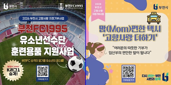 ½Ã ÀÚÄ¡ºÐ±Ç°ú¿¡ µû¸£¸é °íÇâ»ç¶û ÁöÁ¤±âºÎ»ç¾÷Àº ¿À´Â 10¿ù±îÁö ¸ð±ÝÀ» ÁøÇàÇϸç, Áö¿ø ´ë»óÀº ¡®ºÎõFC1995 À¯¼Ò³â ¼±¼ö´Ü ÈÆ·Ã¿ëǰ Áö¿ø¡¯(2õ¸¸ ¿ø)°ú ¡®¸¾(Mom)ÆíÇÑ Åýà °íÇâ»ç¶û ´õÇϱ⡯(3õ¸¸ ¿ø) µî 2°³ »ç¾÷ÀÌ´Ù.