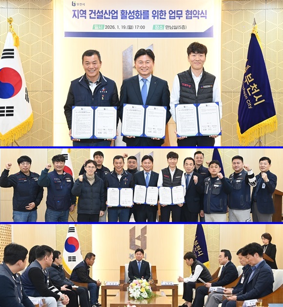 Á¶¿ëÀÍ ºÎõ½ÃÀåÀº ¡°À̹ø Çù¾àÀº Áö¿ª °Ç¼³»ê¾÷ÀÇ Áö¼Ó °¡´ÉÇÑ ¹ßÀüÀ» À§ÇÑ ÀÇ¹Ì ÀÖ´Â Ãâ¹ßÁ¡¡±À̶ó¸ç ¡°¾ÕÀ¸·Îµµ Áö¿ª°æÁ¦¿Í »ó»ýÇÏ´Â °Ç¼³È¯°æÀ» ¸¸µé±â À§ÇØ ´Ù¾çÇÑ Çù·Â ¹æ¾ÈÀ» ÃßÁøÇØ ³ª°¡°Ú´Ù¡±°í ¸»Çß´Ù.