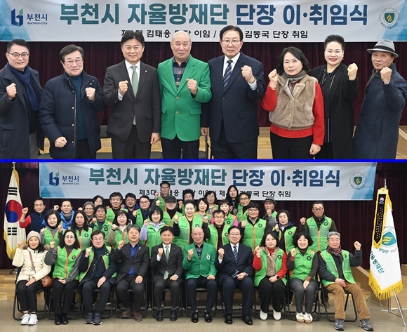 ½Ã Àç³¾ÈÀü°ú¿¡ µû¸£¸é ºÎõ½Ã ÀÚÀ²¹æÀç´Ü ÀÌ¡¤ÃëÀÓ½Ä Çà»ç´Â ÀÌÀÓÇÏ´Â ±èÅ¿õ Àü ´ÜÀå¿¡°Ô °¨»çÆÐ Àü´Þ ¹× ÀÌÀӻ翡 À̾î, »õ·Î ¼±ÀÓµÈ ±èµ¿±¹ ´ÜÀå¿¡°Ô À§ÃËÀå ¼ö¿© ¹× ÃëÀÓ»ç, Á¶¿ëÀÍ ½ÃÀåÀÇ Ãà»ç, Âü¼®ÀÚ ±â³äÃÔ¿µ ¼øÀ¸·Î ÁøÇàµÆ´Ù.