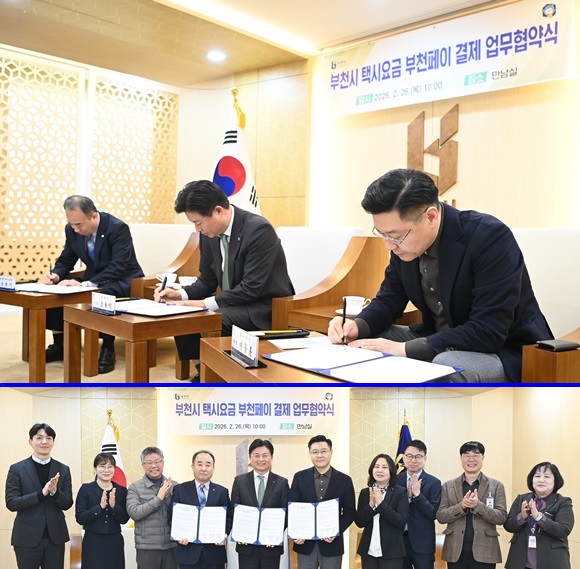 ºÎõ½Ã´Â Áö³­ 26ÀÏ ¡®ºÎõ½Ã Åýÿä±Ý ºÎõÆäÀÌ °áÁ¦ µµÀÔ¡¯ ¾÷¹«Çù¾àÀ» ü°áÇß´Ù. ¾Æ·¡´Â Á¶¿ëÀÍ ºÎõ½ÃÀå°ú º¯µ¿ÈÆ ÄÚ³ª¾ÆÀÌ »çÀå, Á¶ºÀ±â ºÎõ°³ÀÎÅýÃÁ¶ÇÕÀå µî Çù¾à½Ä Âü¼®ÀÚµéÀÌ ±â³äÃÔ¿µÀ» Çϰí ÀÖ´Ù.(»çÁø= ºÎõ½Ã Á¦°ø)