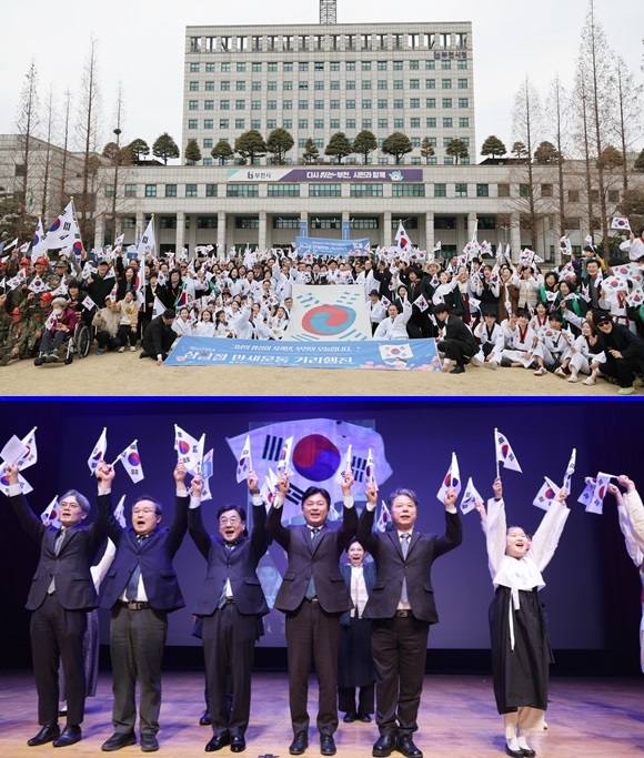 ºÎõ½Ã´Â 1ÀÏ ½Ãû ¾î¿ï¸¶´ç¿¡¼­ 500¿© ¸íÀÇ ½Ã¹ÎÀÌ Âü¼®ÇÑ °¡¿îµ¥ ¡®Á¦107ÁÖ³â 3¡¤1Àý ±â³ä½Ä¡¯À» ¿­°í µ¶¸³Á¤½Å°ú ³ª¶ó»ç¶ûÀÇ °¡Ä¡¸¦ µÇ»õ°å´Ù.