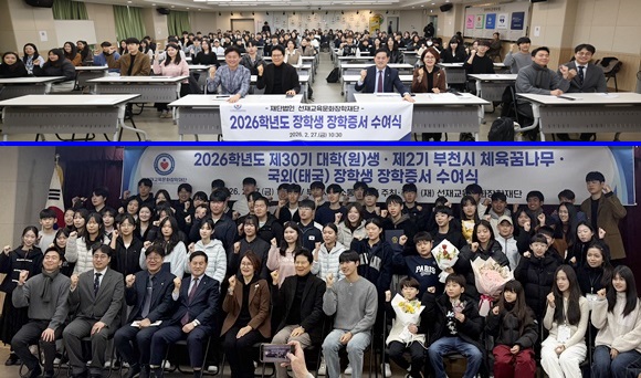 ºÎõ½Ã´Â Áö³­ 2¿ù 27ÀÏ ¼±Àç±³À°¹®È­ÀåÇÐÀç´Ü ÁÖÃÖ¡¤ÁÖ°üÀ¸·Î ¡®Á¦2±â üÀ°²Þ³ª¹« ÀåÇлý ÀåÇÐÁõ¼­ ¼ö¿©½Ä¡¯À» °³ÃÖÇß´Ù. ÀÌ·¡´Â ±â³äÃÔ¿µ ¸ð½À.(»çÁø= ºÎõ½Ã Á¦°ø)