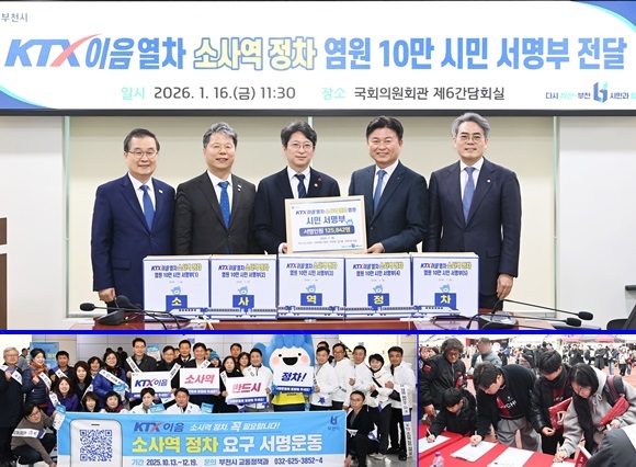 ºÎõ½Ã´Â Áö³­ 1¿ù 16ÀÏ KTX-ÀÌÀ½¿­Â÷ ¼Ò»ç¿ª Á¤Â÷¸¦ ¿°¿øÇÏ´Â 12¸¸5õ842¸íÀÇ ½Ã¹Î ¼­¸íºÎ¸¦ ±¹Åä±³ÅëºÎ¿¡ Àü´ÞÇß´Ù. ¿ÞÂʺÎÅÍ ¼­¿µ¼®(ºÎõ½Ã°©)¡¤À̰ÇÅÂ(ºÎõ½Ãº´) ±¹È¸ÀÇ¿ø, È«Áö¼± ±¹Åä±³ÅëºÎ Á¦2Â÷°ü, Á¶¿ëÀÍ ºÎõ½ÃÀå, ±è±âÇ¥(ºÎõ½ÃÀ») ±¹È¸ÀÇ¿ø. ¾Æ·¡´Â ¡®KTX ÀÌÀ½¿­Â÷ ¼Ò»ç¿ª Á¤Â÷ ¿ä±¸ ¼­¸í¿îµ¿¡¯ ¸ð½À.(»çÁø= ºÎõ½Ã Á¦°ø)