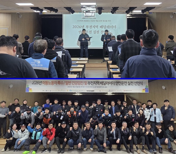 ºÎõ½Ã´Â Áö³­ 24ÀÏ ºÎõ½Ã³ëµ¿ÀÚÁ¾ÇÕº¹Áö°ü¿¡¼­ ÀÌ·ûÂ÷(¿ÀÅä¹ÙÀÌ) »ç°í ¿¹¹æ°ú ¾ÈÀüÇÑ ¹è´Þ¹®È­ Á¤ÂøÀ» À§ÇØ ¡®2026³â À̵¿³ëµ¿ÀÚ °Ç°­°ËÁø ¹× ºÎõÁö¿ª ¹è´Þ¶óÀÌ´õ ¾ÈÀü¿îÀü ½Çõ ¼±¾ð½Ä¡¯À» °³ÃÖÇß´Ù.