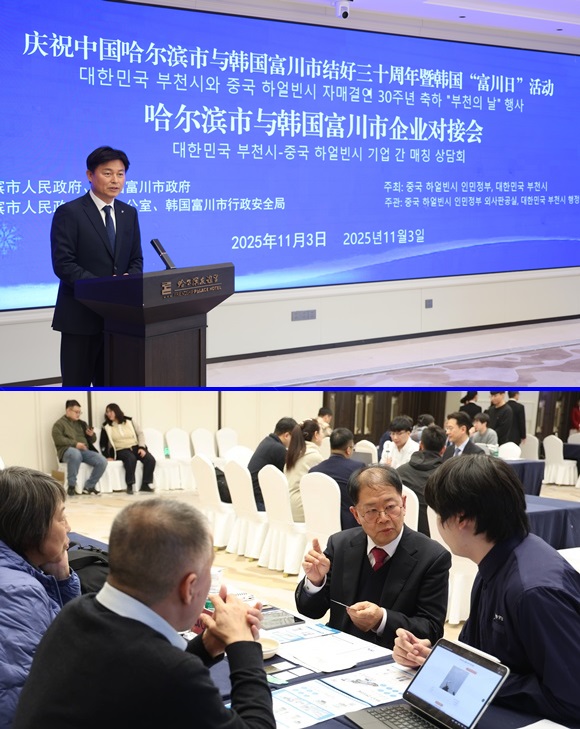 Á¶¿ëÀÍ ºÎõ½ÃÀåÀÌ 3ÀÏ ¿­¸° ¡®ºÎõ½Ã-ÇϾóºó½Ã ±â¾÷ ¼öÃâ»ó´ãȸ¡¯¿¡¼­ Àλ縻À» Çϰí ÀÖ´Ù. ¾Æ·¡´Â °ü³» ±â¾÷°ú ÇϾóºó ÇöÁö ¿¡ÀÌÀü½Ã°¡ 1:1 ºñÁî´Ï½º »ó´ãÀ» ÁøÇàÇÏ´Â ¸ð½À.(»çÁø= ºÎõ½Ã Á¦°ø)