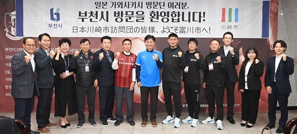 Á¶¿ëÀÍ ºÎõ½ÃÀå°ú ÀϺ» °¡¿Í»çŰ½Ã À¯¼Ò³â Ã౸ ¼±¼ö´Ü, ºÎõ½Ã °ü°èÀÚµéÀÌ ±â³äÃÔ¿µÀ» Çϰí ÀÖ´Ù.(»çÁø= ºÎõ½Ã Á¦°ø)