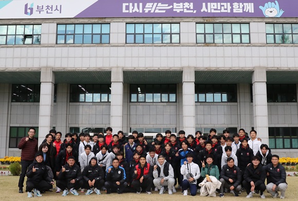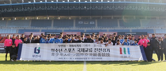 ºÎõ½Ã¿Í ÀϺ» °¡¿Í»çŰ½Ã À¯¼Ò³â Ã౸ ¼±¼öµéÀÌ ºÎ«GÁ¾ÇտÀå¿¡¼­ Ä£¼±°æ±â ±â³äÃÔ¿µÀ» Çϰí ÀÖ´Ù.(»çÁø= ºÎõ½Ã Á¦°ø)