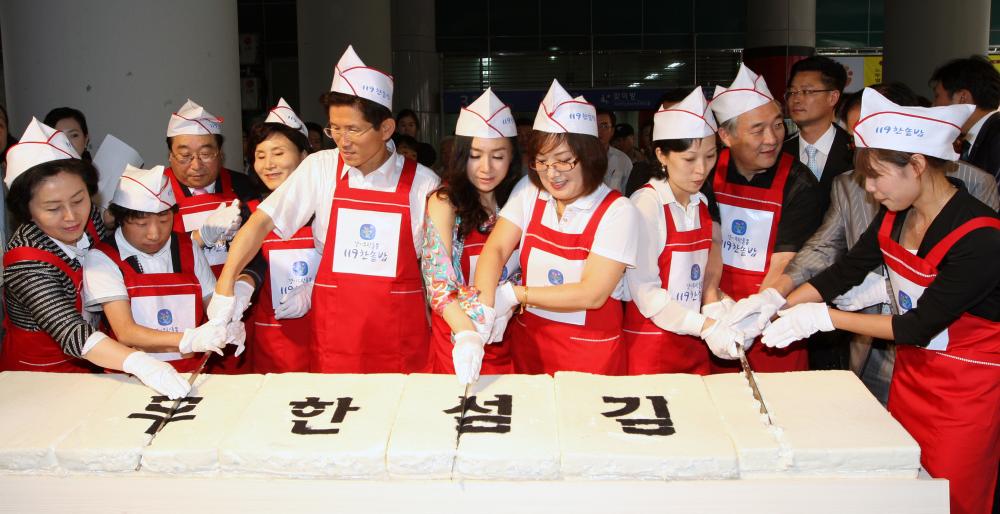 ¡â±è¹®¼ö °æ±âÁö»ç°¡ ºÎÀÎ ¼³³­¿µ ¿©»ç, ÃëÀÓ½Ä Âü¼®Àλçµé°ú ÇÔ²² ¾ç³äÀ¸·Î È­ÇÕÀ̶ó´Â ±Û¾¾°¡ ¾²¿© ÀÖ´Â ºñº÷¹äÀ» ¸¸µé°í ÀÖ´Ù.