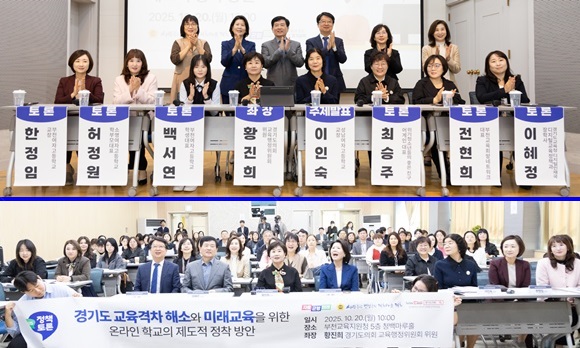 °æ±âµµÀÇȸ ±³À°ÇàÁ¤À§¿øÈ¸´Â 20ÀÏ ¿ÀÀü 10½Ã ºÎõ±³À°Áö¿øÃ» 5Ãþ û¹é¸¶·çȦ¿¡¼­ ¡®°æ±âµµ ±³À°°ÝÂ÷ ÇØ¼Ò¿Í ¹Ì·¡±³À°À» À§ÇÑ ¿Â¶óÀÎÇб³ÀÇ Á¦µµÀû Á¤Âø ¹æ¾È¡¯À» ÁÖÁ¦·Î °æ±â±³À°Á¤Ã¥Åä·Ðȸ¸¦ °³ÃÖÇß´Ù.(»çÁø= °æ±âµµÀÇȸ Á¦°ø)