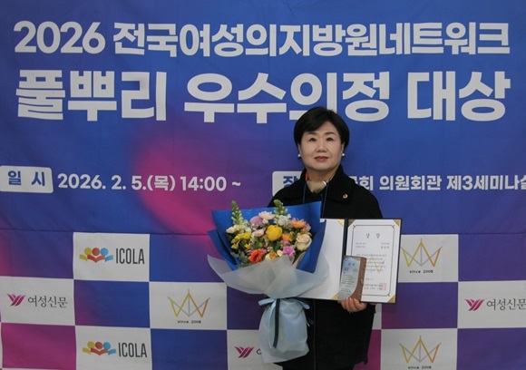 ȲÁøÈñ °æ±âµµÀÇ¿øÀÌ Áö³­ 5ÀÏ ±¹È¸ ÀÇ¿øÈ¸°ü¿¡¼­ ¿­¸° ¡®2026 Àü±¹¿©¼ºÁö¹æÀÇ¿ø³×Æ®¿öÅ© Ç®»Ñ¸® ¿ì¼öÀÇÁ¤¡¯ °ø¸ð¿¡¼­ ¡®¸¼Àº Á¤Ä¡¡¯ ºÐ¾ß ÃÖ¿ì¼ö»óÀ» ¼ö»óÇÏ°í ±â³äÃÔ¿µÀ» Çϰí ÀÖ´Ù.(»çÁø=°æ±âµµÀÇȸ Á¦°ø)