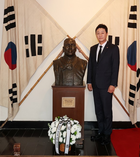 ±èÀܰæ ÀÇÀåÀº ±è±¸ ¼±»ý Èä»ó ¾Õ¿¡ ÇåÈ­¿Í ¹¬³äÀ» ¸¶Ä¡°í, ¹æ¸í·Ï¿¡ ¡®ÀÚÀ¯¿Í µ¶¸³À» ÇâÇÑ ¼±¿­ÀÇ ¶æ, µµ¹Î°ú ÇÔ²² ÁöŰ°Ú´Ù¡¯¶ó´Â ´ÙÁüÀ» Àû¾ú´Ù. À̾î ÀÓ½ÃÁ¤ºÎ û»ç Àü½Ã½Ç°ú º¹¿øµÈ Áý¹«½Ç µîÀ» µÑ·¯º¸¸ç, µ¶¸³¿îµ¿ÀÇ ÈçÀûÀ» µÇ¤¾ú´Ù.