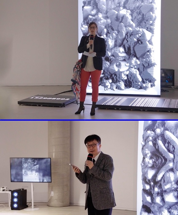 ¿À´Â 16ÀϱîÁö ¿­¸®´Â À̹ø Àü½Ã¿¡¼­´Â ¼Ò³àÀÇ °¨Á¤ ÆÄÆíÀÌ °¡»ó °ø°£À» °¡µæ ¸Þ¿ì¸ç ¡®°¨Á¤ÀÇ ¼Óµµ¡¯·Î ÀüȯµÇ´Â ¹¦ÇÑ °¨°¢À» ¼±»çÇÏ´Â ¡®The Exploding Girl¡¯°ú À½¾Ç°ú ÀΰøÁö´É, °¨Á¤ µ¥ÀÌÅÍ·Î ´Þ¿¡¼­´Â À½¾ÇÀ» ¾î¶»°Ô µéÀ»Áö¿¡ ´ëÇÑ ´äÀ» Ž»öÇÏ´Â ¡®How to Listen to Music on the Moon¡¯, ¿ì¸®°¡ ±Ã±ÝÇØÇÏ´Â À¯¸íÀλçµéÀ» AI·Î »ì¾Æ¼û½¬°Ô ÇÑ ¡®Hush Now¡¯, ÀÚ¿¬ÀÌ VR°ø°£ ¼Ó¿¡¼­ ź»ýÇØ ´Ù½Ã ¼û ½¬´Â °ÍÀ» ±×·Á³½ ¡®Sabia¡¯, ½Ç½Ã°£ °¡»óÈ­Æó µ¥ÀÌÅ͸¦ ºû°ú Á¤º¸ÀÇ °áÁ¤Ã¼·Î º¯È¯ÇÑ ¡®Crystals¡¯±îÁö ÃÑ ´Ù¼¸ ÀÛǰÀ» ¸¸³¯ ¼ö ÀÖ´Ù.
