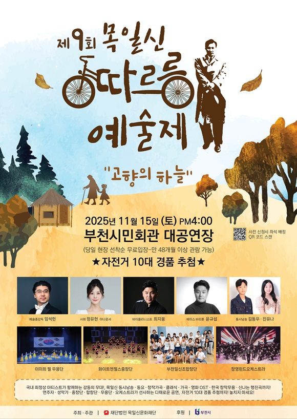 ¡®Á¦9ȸ ¸ñÀϽŵû¸£¸ª¿¹¼úÁ¦¡¯°¡ ¿À´Â 11¿ù 15ÀÏ(Åä) ¿ÀÈÄ 4½Ã ºÎõ½Ã¹Îȸ°ü ´ë°ø¿¬Àå¿¡¼­ °³ÃֵȴÙ.