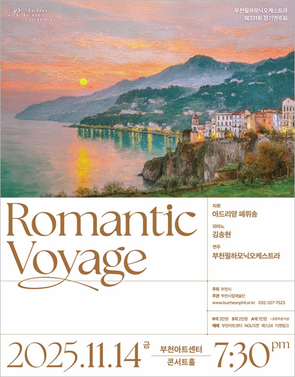 ºÎõÇÊÇϸð´Ð¿ÀÄɽºÆ®¶ó(ÀÌÇÏ ºÎõÇÊ)°¡ ¿À´Â 11¿ù 14ÀÏ ¿ÀÈÄ 7½Ã 30ºÐ ºÎõ¾ÆÆ®¼¾ÅÍ Äܼ­Æ®È¦¿¡¼­ Á¦331ȸ Á¤±â¿¬ÁÖȸ ¡®Romantic Voyage¡¯¸¦ °³ÃÖÇÑ´Ù.