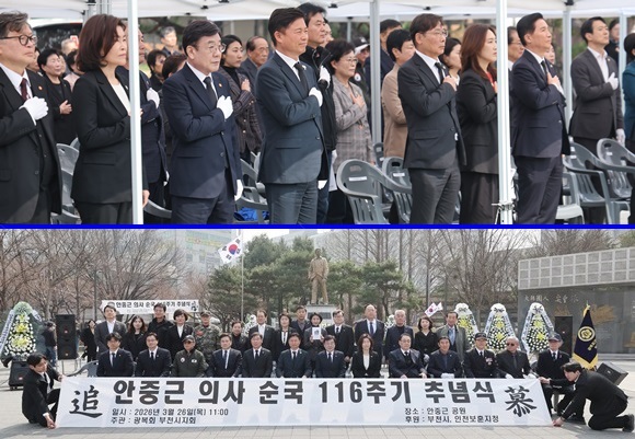 ºÎõ½Ã´Â Áö³­ 26ÀÏ ¾ÈÁß±Ù°ø¿ø¿¡¼­ ±¤º¹È¸ ºÎõ½ÃÁöȸ ÁÖ°üÀ¸·Î ¡®¾ÈÁß±Ù ÀÇ»ç ¼ø±¹ 116ÁÖ±â Ãß³ä½Ä¡¯À» °³ÃÖÇß´Ù.(»çÁø= ºÎõ½Ã Á¦°ø)